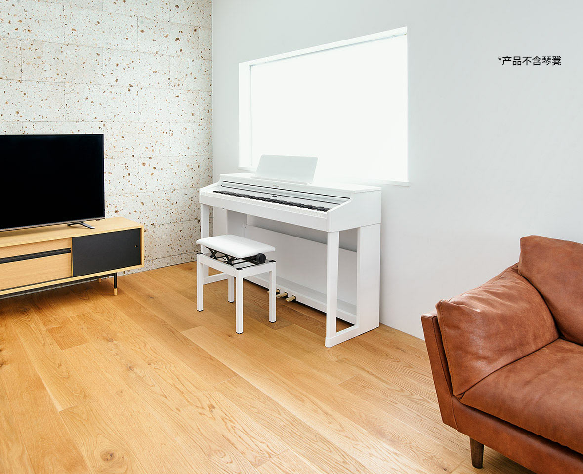 RP701 的设计简洁直观,即便是年龄较小的演奏者也能轻松掌握演奏方法。无需费心研读使用手册,演奏者便可利用琴身上简明易懂的标示和排列有序的操作面板轻松调节各种功能。内置蓝牙 Audio 可以连接手机,通过钢琴播放手机内的音乐,还可以连接多款应用软件,层出不穷的新玩法定会令演奏者爱不释手。产品内置强大扬声器,沉浸感十足,能将音乐充满整个房间;演奏者独自练习时可利用耳机 3D 环境效果功能专注提升琴艺;仅凭这架高品质钢琴的古典外观便足以给家中营造一派高雅的艺术气息。