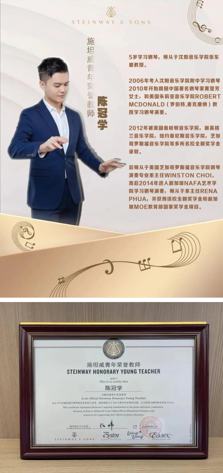 “其实,艺术的学习过程不是全部都是享受的,甚至严格来说是很辛苦,很痛苦的过程。”陈冠学在最后说到,自己在从事了钢琴老师这个职业以后,接触到了很多小朋友和家长。也和自己的学生一起在练琴的过程中收获了快乐和成长。所以我们学习业余爱好的过程中要把握好一个度,我们以欣赏的眼光去看我们的孩子,用放大镜去看他们的进步,但是我们也要在孩子们遇到苦难的时候推一推他们,鼓励他们往前走一走。就像盛音乐器所提倡的那样,让大家都能够享受音乐带来的快乐和美。在盛音乐器的帮助下,陈冠学老师更多次筹办个人独奏会、私享音乐会、讲座等活动。一场场难忘的音乐之旅,分享给每一位热爱音乐、热爱生活的人。
